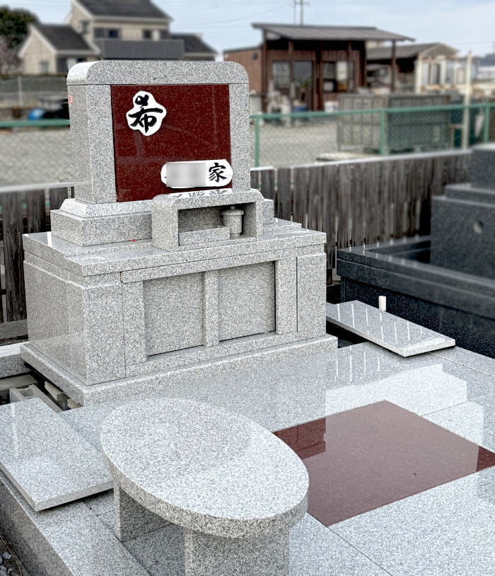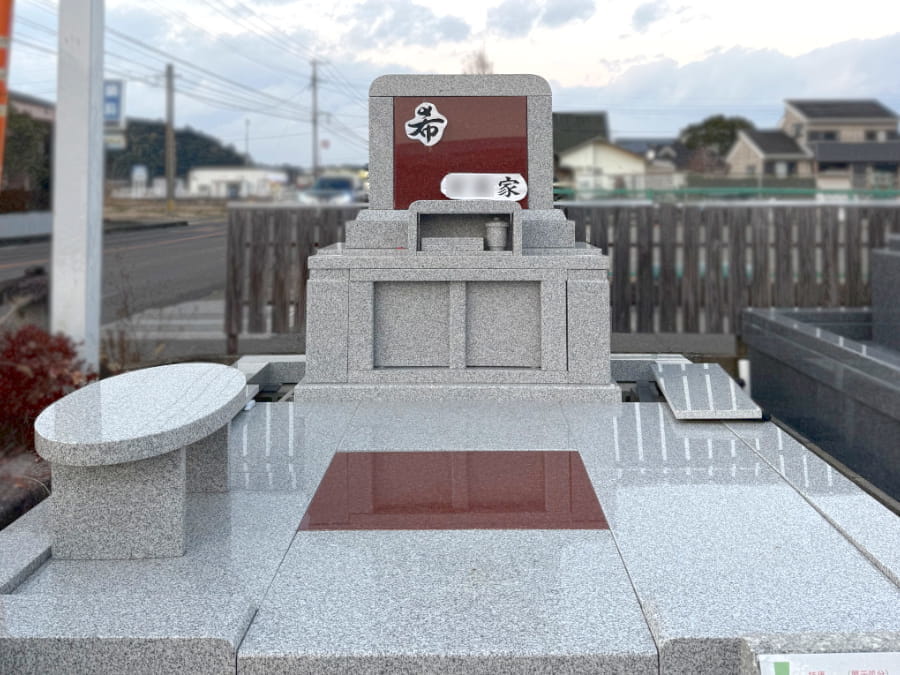 仕入れ元の協賛により、人気の洋型墓石(白・赤御影使用)を税込88万円・2基限定でご案内いたします。機能性に優れたデザインの洋型墓石で、サイズは約2m×2.5m。宮崎市営霊園などに適した大きさです。(下記のお写真は参考です。実物と異なることがあります。)