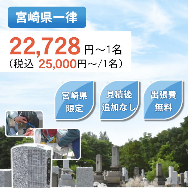 宮崎県のお墓の追加彫刻の費用は、各石材店によって異なりますが、約30,000円~が平均費用の相場です。その他、お墓の立地や彫刻する文字の大きさ、文字数などによっても費用が変わることもございます。そのため具体的な見積りを取ることが重要になります。